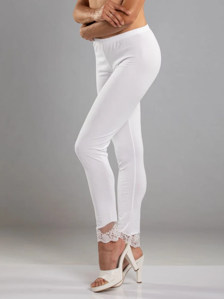 Die Leggings aus der Basic Serie „Cotone Candy“ des italienischen Wäscheherstellers ist lang geschnitten und an den Beinenden mit Spitze gestaltet. Sie ist in den folgenden Farben erhältlich:
