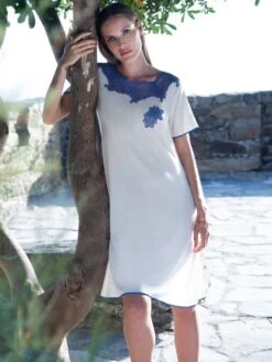 Modal Nachthemd SUMMER PANNA No. 3 Weiß-blau Von Chiara Fiorini