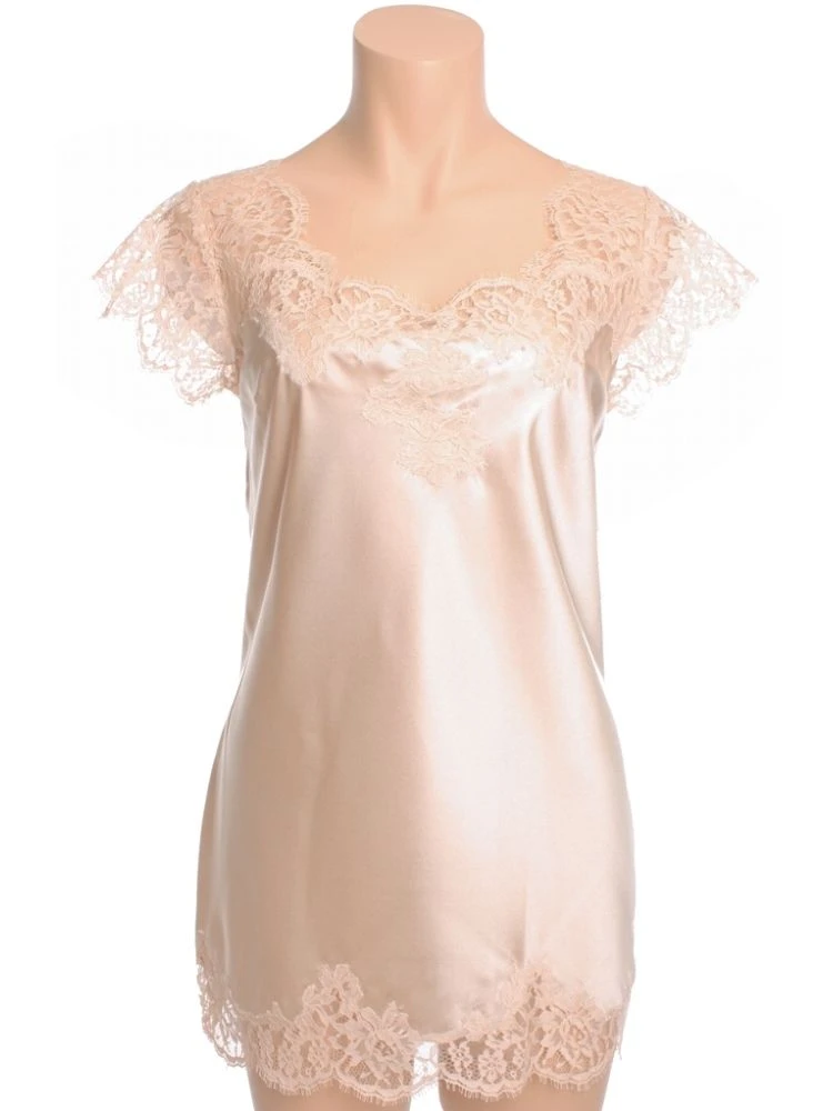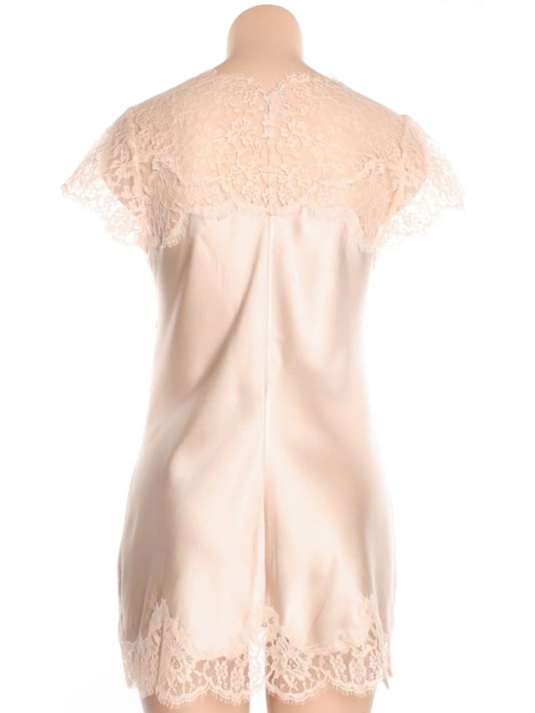 Das kurze Seidennegligé Etincelle der französischen Edel-Marke Marjolaine ist eine Seiden-Nachtwäsche der Luxus-Klasse. Der edle Seidensatin wurde mit exquisiter Caudry Spitze aus Calais zu einer aufregenden Nachtwäsche verarbeitet.