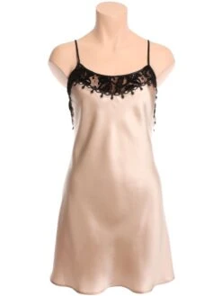 100% Seide Nachthemd FAUSTINE Mit Velour-Spitze Von Marjolaine